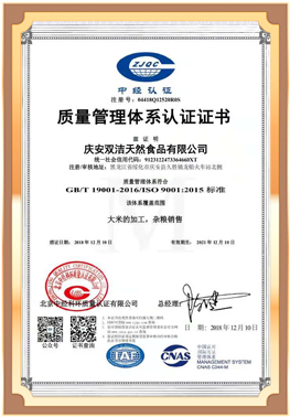 慶安雙潔天然食品有限公司認定為黑龍江省農(nóng)業(yè)產(chǎn)業(yè)化重點龍頭企業(yè)